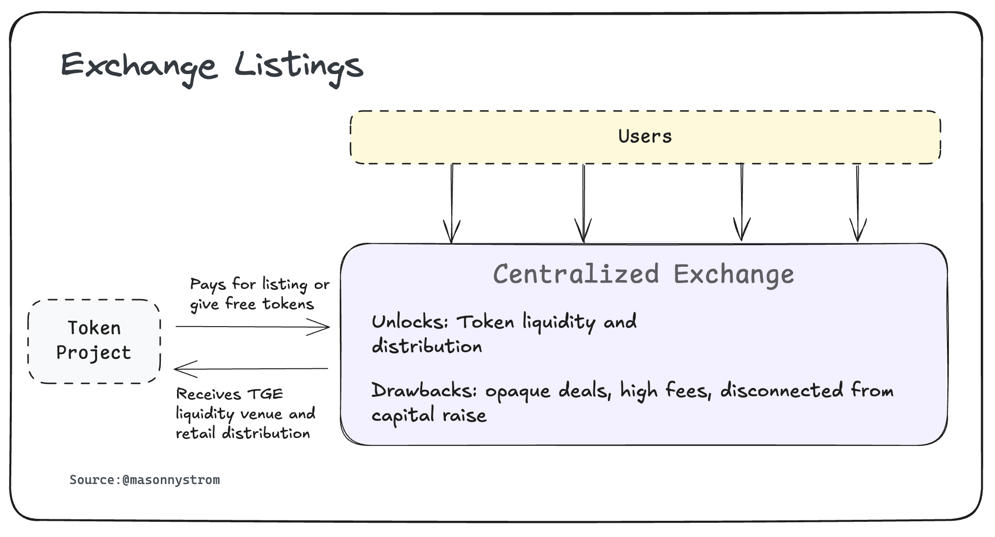 Initial exchange offerings and exchange listings provided projects distribution and access to broader capital, but have devolved into a game of backroom deals and pay to play structuring that has driven poor incentive alignment and subpar outcomes for all those involved.