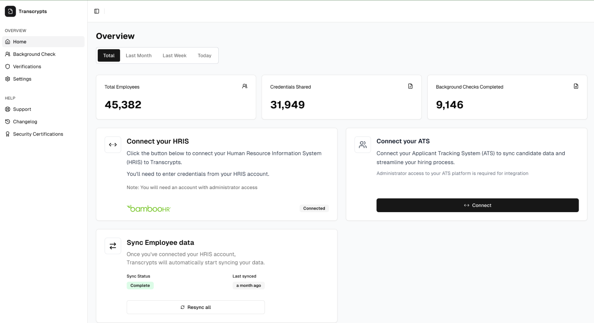 TransCrypts replaces the broken system with a credentialing platform that leverages zero-knowledge proofs for repeat, verifiable and self-sovereign identity. The product integrates directly with HR and payroll providers like Rippling (takes only 10 minutes!), issuing verified records (such as proof of employment and income) to employees on a recurring basis. Employees can then share them with landlords, lenders or employers.